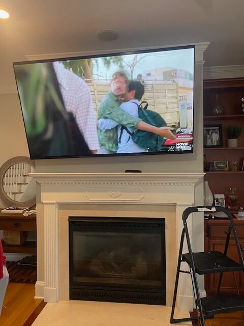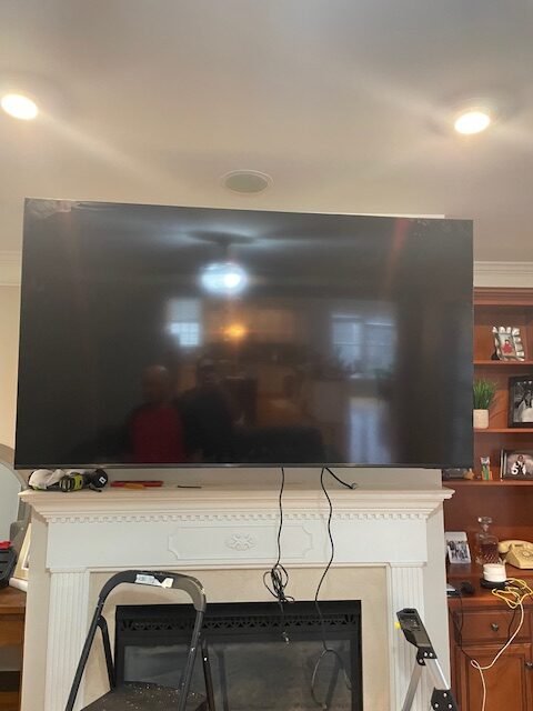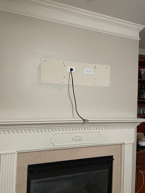 Local Handyman Cary mounted the TV above the fireplace to create a clean focal point, hide cables, and improve the overall viewing experience with a modern, streamlined look.