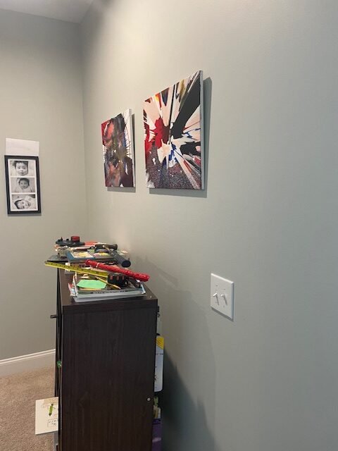 Local Handyman Cary installed artwork with precise alignment and securely mounted bathroom hardware, creating a clean, cohesive, and finished look throughout the home.